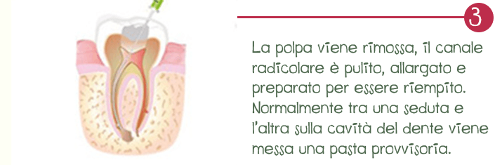 (detta anche trattamento endodontico o devitalizzazione) consiste nella rimozione della polpa dentale e dei residui batterici all’interno del canale radicolare; nella disinfezione e allargamento dello stesso e nel successivo riempimento con materiale inerte, in modo da evitare la proliferazione di batteri al suo interno. Con la cura canalare denti anche molto danneggiati possono essere salvati evitando di essere estratti.