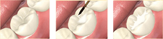 La sigillatura viene eseguita mediante l’applicazione di una resina fluida sui solchi e successivamente fatta indurire mediante lampada a raggi ultra violetti. Una volta applicato, il sigillante impedisce alla placca batterica di penetrare dentro.