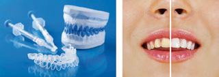 Per lo sbiancamento a casa,si prenderanno dei calchi dei denti e si faranno una o due mascherine individuali. È importante che la maschera si adatti bene alla bocca in modo che l’agente sbiancante rimanga a contatto con i denti e non irriti le gengive. A casa verrà riempita ciascuna mascherina con il gel sbiancante, e verrà indossata per diverse ore alla sera.