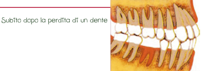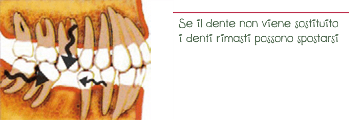 Ci sono molti svantaggi nel perdere i denti naturali: se un dente perso non viene sostituito, i denti adiacenti possono spostarsi dalla loro normale posizione. Denti storti o affollati oltre a compromettere la normale masticazione, sono più diffi cili da pulire favorendo l’insorgere di carie e disturbi gengivali (malattie parodontali).