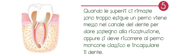 Un dente trattato con la cura canalare è più fragile di un dente vitale, per cui molto spesso richiede di essere ricoperto con una corona protesica (capsula) per evitare fratture.