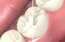 La sigillatura viene eseguita mediante l’applicazione di una resina fluida sui solchi e successivamente fatta indurire mediante lampada a raggi ultra violetti. Una volta applicato, il sigillante impedisce alla placca batterica di penetrare dentro.