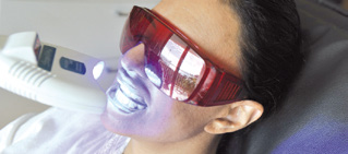 Il dentista applicherà un gel sulle gengive per proteggerle dallo sbiancante, che verrà quindi applicato solo sui denti. La sostanza più comune usata per lo sbiancamento professionale è il perossido di idrogeno (acqua ossigenata). Alcuni agenti sbiancanti sono attivati da luci speciali o dal calore. Dopo l’applicazione dell’agente sbiancante, il dentista accenderà una luce sui denti per un breve periodo.